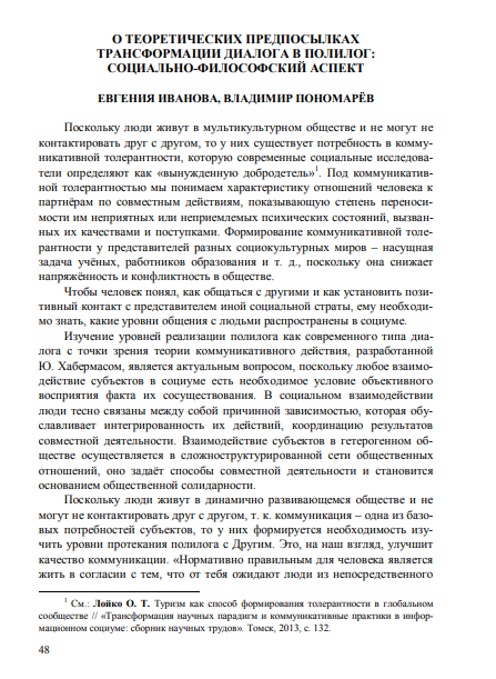 О ТЕОРЕТИЧЕСКИХ ПРЕДПОСЫЛКАХ ТРАНСФОРМАЦИИ ДИАЛОГА В ПОЛИЛОГ: СОЦИАЛЬНО-ФИЛОСОФСКИЙ АСПЕКТ