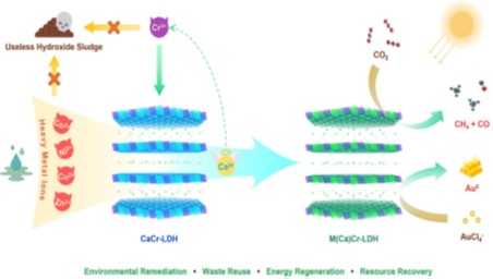 With the rapid industrial development, industrial wastewater poses a significant environmental burden. The prevailing chemical precipitation treatment requires excessive chemicals, leading to substantial sludge production, unstable hydroxides, and limited resource utilization. Addressing these challenges, Duan Xue’s team proposed the super-stable mineralizer technique. LDHs replace heavy metal ions by isomorphous substitution, creating a super stable mineralized structure. This approach effectively reduces heavy metal ion migration and bioavailability. With its versatility in treating Ni, Cu, Cr, and Pb, it also proven effective in real wastewater. Moreover, the super-stable mineralized materials selectively convert trace ionic gold into simpler gold, exhibiting exceptional performance in electrolytic water and CO2PR. This innovation offers new possibilities in clean energy and waste resource recycling. In treating highly concentrated heavy metal wastewater, it successfully transforms Cu, Ni, Pb, and other metals into elemental forms, enabling heavy metal resource recovery and expanding the application of treating heavy metal-polluted wastewater.